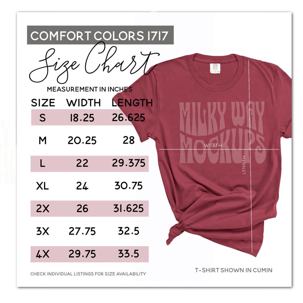 Comfort Colors 1717 Sizing Chart, Digital Mockups, Store Listing Photos, Garment Dyed Shirt Size Chart in Cumin